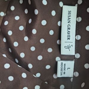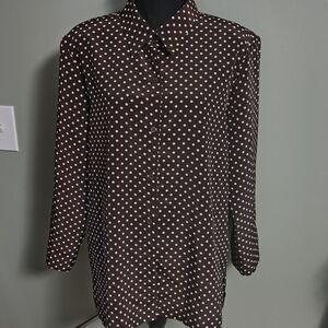 Susan Graves, long sleeve, polkadot, light weight blouse, great for the office, or with a pair of jeans and some heel