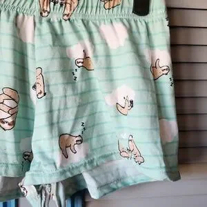 Color: Mint green with sloth graphics and striped shorts