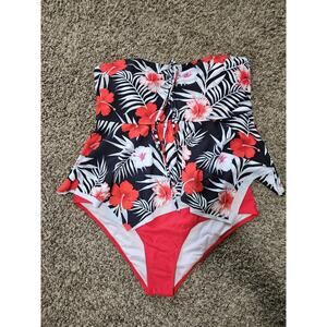 PatPat Tropical Red/White/Black Floral 2 Piece Women's Swimsuit XL