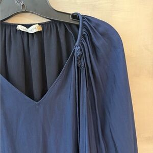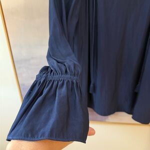Ramy Brook Navy Blue Long Sleeve Satin Blouse