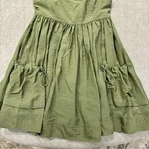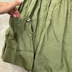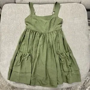 Stylish olive green dress with pockets. Perfect for casual outings.