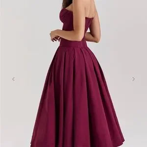House of CB LADY Wine Strapless Midi Dress