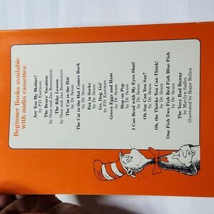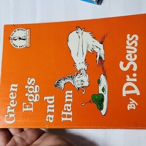 Three classic Dr. Seuss books. Includes 'Green Eggs and Ham', 'Dr. Seuss's ABC', and 'The Cat in the Hat Comes Back'. Bright covers in red, blue, and white.