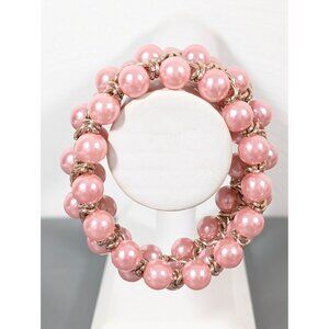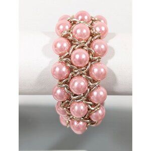Pink Faux Pearl Woven Chain Bracelet Retro Evening Elegant 7"