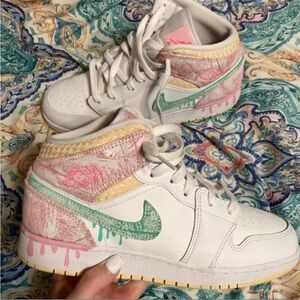 Stylish Jordan sneakers for women. Features black, white, and pink colors. Comfortable and trendy design.