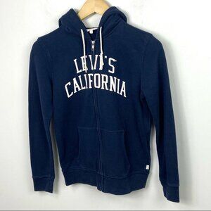 Levis Classic Sweatshirt Hoodie Navy Blue Fleece Size XS Hooded Spellout Zipper