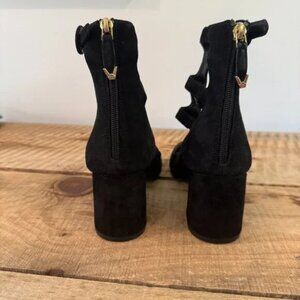 A caged silhouettes gives these classic block heels a bold, contemporary feel.