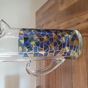 Vintage MCM Martini Cocktail Pitcher 22K Gold Mosaic West Virginia Glass Co