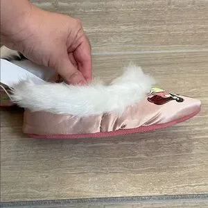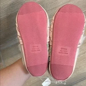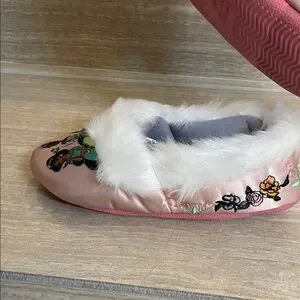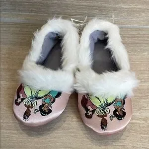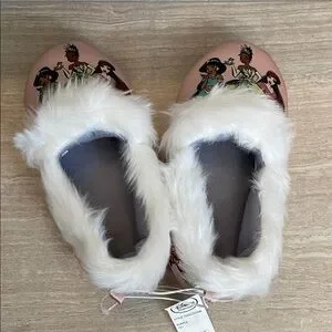 Adorable slippers with Disney Princess design. Soft pink with fluffy white trim. Perfect for little ones.