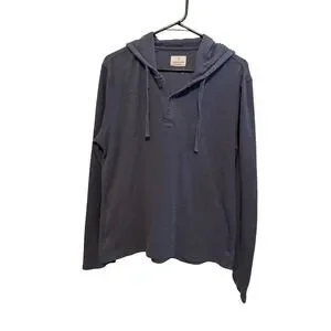 Mutual Weave Mens Hoodie Henley Long Sleeve Top Casual Blue Medium