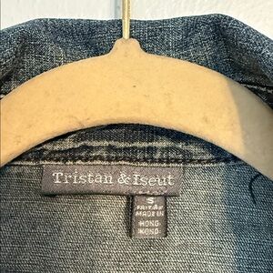 From the brand Tristan and Isuet. Made in Hong Kong. %100 cotton. Tiny pin hole in back last photo.
