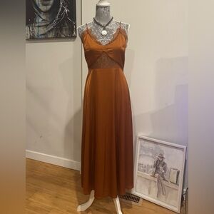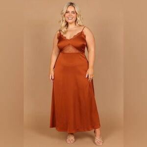 Petal & Pup / Ariel Dress - Rust Satin Sheen Feel Lace Midi Dress