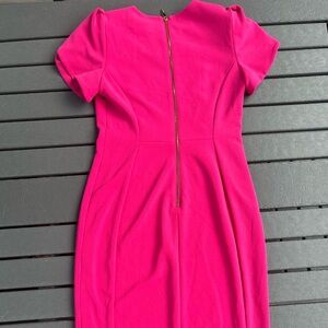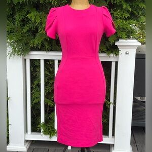 Calvin Klein; Fuchsia Midi Dress; Puff Sleeves; Gold Tone Zipper; NWOT; Size 4