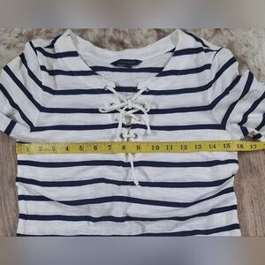 Tommy Hilfiger navy & ivory striped lace up pullover sz S/P #1447