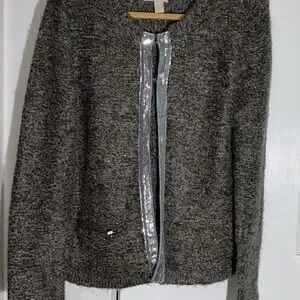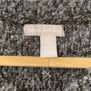 Banana Republic Cardigan Grey XL Merino Wool Blend Hook Closure Sequins GUC AA07