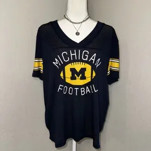ProEdge Michigan Wolverines Football Jersey XL Blue Mesh V-Neck Short Sleeve.