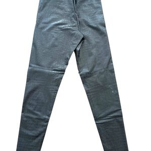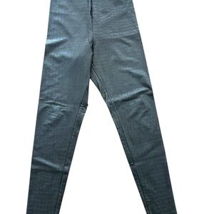 Stylish black pleather leggings featuring alligator skin texture. Perfect for any occasion.