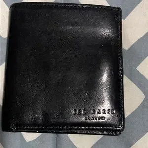 Elegant black leather card holder. Features Ted Baker branding. Ideal for everyday use.