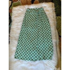 Stylish green midi skirt with geometric pattern. Perfect for any occasion. Elegant and versatile.