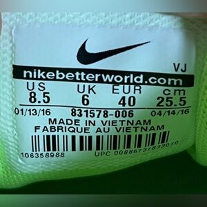Gently used. See pictures. No original box. No rips or tears. Excellent tread on soles. There’s some paint missing on the back midsole of the left shoe (see pictures). Smoke free. All shoes clean and sanitized.