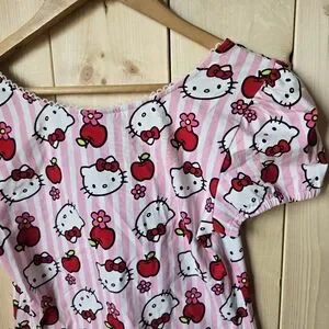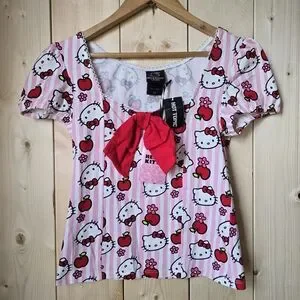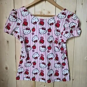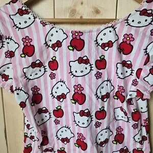 Hello Kitty Sanrio Hot Topic Apples Flowers Bow Blouse Womens Small/Medium