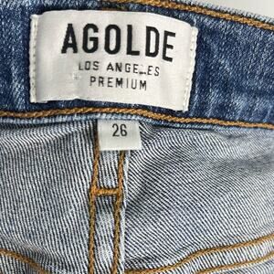 ITEM: AGOLDE Sophie Hi Rise Distressed Ripped Stretch Skinny Jeans - zipper/button closure, intentional distressing, rips, and holes throughout