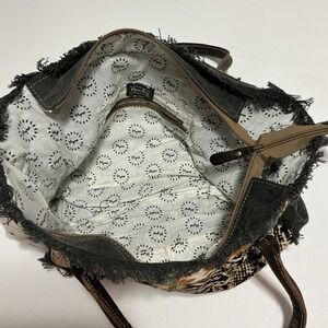 Myra Bag Patchwork Tote Bag Canvas Leather Hide Prints Fringed Boho Chic