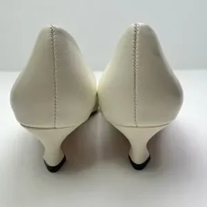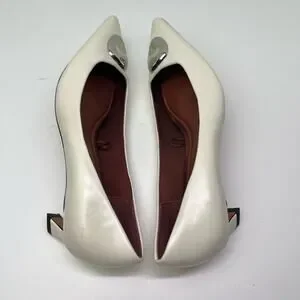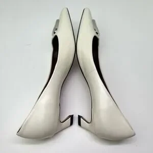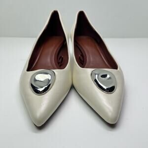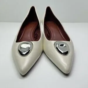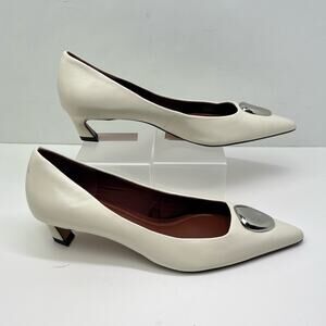 ITEM: Zara Women's Metal Detail White Leather Kitten Heel Pointed Toe Shoes