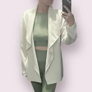 Alfani Soft White Open Front Draped Blazer | Size L