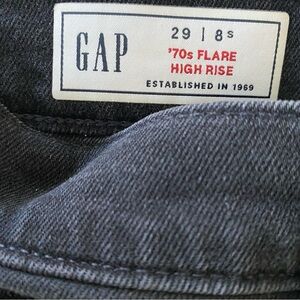 Stylish black flare jeans from GAP. Front patch pockets. Zipper fly. Size 29/8 short