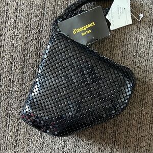 A stylish Elegant black mesh evening bag by D'margeaux featuring a sleek black design. Perfect for formal occasions. This bag adds a touch of elegance to any outfit, brand new with Tag never before worn