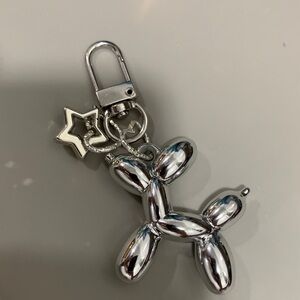 Stylish silver balloon dog keychain with star charm. Perfect accessory for bags or keys.