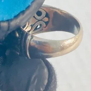 Wear it as a statement piece or stack it with minimalist bands for contrast. It pairs beautifully with silk, denim, or tailored neutrals—adding a touch of regal mystique to any look.