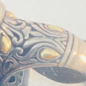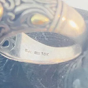 Vintage Sterling Silver & 18K Gold Ornate Gemstone Ring – BJC 925 18K