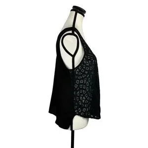 Black Lace Sleeveless Blouse Sheer Crochet Cutout Boho Goth Festival Clubwear M