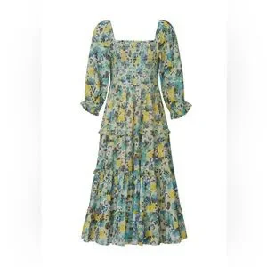 LoveShackFancy Floral Capri Smocked Midi Dress Size L