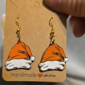 Handmade Orange Santa Hat Earrings