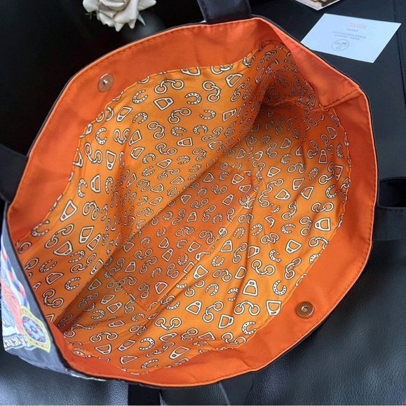Sophisticated Hermès tote with intricate equestrian motif. Features bold patterns and vibrant colors. Absolutely gorgeous!