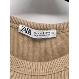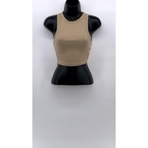 ZARA Women's Tan Rib Knit Casual Crewneck Sleeveless Cropped Top SZ S