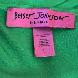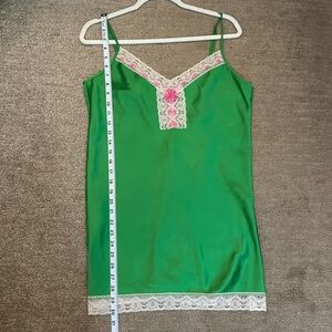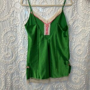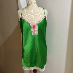 Betsey Johnson Intimates Vintage 90βs Green Lace Pink Bows Nightie Slip Dress L