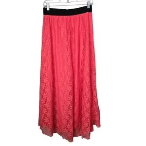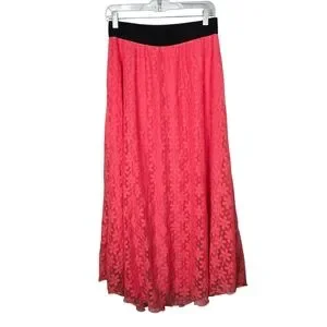 Lularoe Pink Black Floral Lace Maxi Skirt M