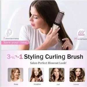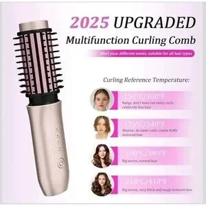 Cordless Hair Curling Iron Brush, Travel Curl Brush, 3-in-1 Portable Curling Iron Cordless, Plasma Thermal Hair Brush, 7000mAh USB Rechargeable Curlings Wand, Mini Hot Curlings Brush-Blush Pink. 100+ bought in past month.