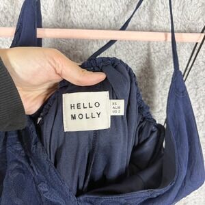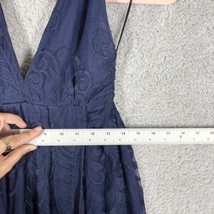 Keywords: Hello Molly dress, maxi dress, navy blue dress, floral lace dress, halter neck dress, sleeveless dress, women's dress, size XS, bohemian dress, formal dress, party dress, evening dress, special occasion dress