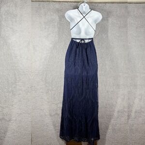 Hello Molly East Atlanta Lace Maxi Wrap Dress Size XS Navy Blue V Neck Backless