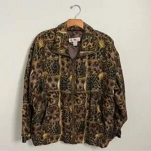 Stunt collections vintage leopard animal print silk bomber jacket small