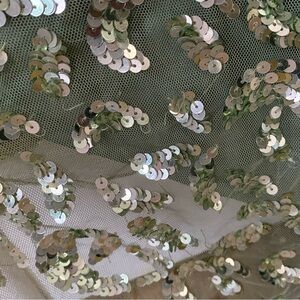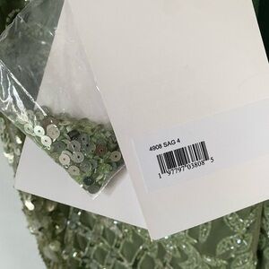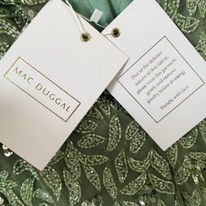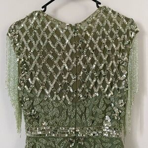 $698 Mac Duggal High Neck Beaded Sequin Fringe Sage Green Gown Dress 4908 Size 4