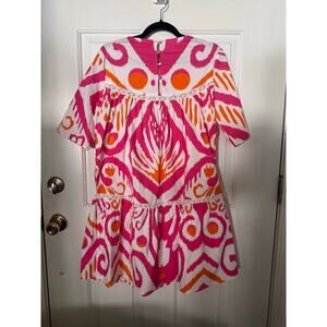 Sheridan French Embellished Short Sleeve Crew Neck Tiered Mini Dress Pink Small