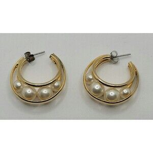Vintage Gold Tone Faux Pearl Hoop Pierced Earrings Make Offer