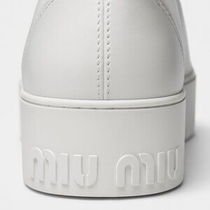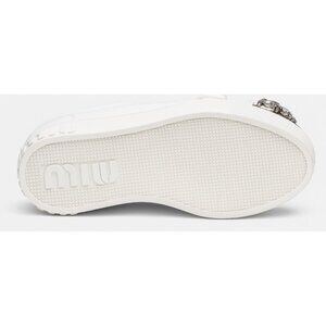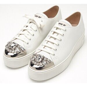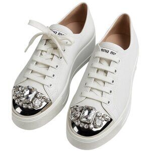 Miu Miu Swarovski Crystal Toe-Cap Nappa Leather Sneakers White Platform 40.5-10