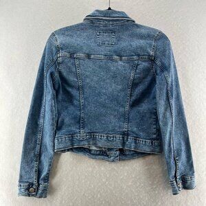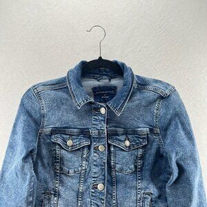 Aeropostale Jacket Womens Sz S Trucker Crop Button Front Long Sleeve Denim Blue